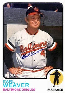 Arguably the greatest manager of his time, Weaver always had his team in contention. Utilizing the great pitching and 3 run homer combo Weaver only had a losing record once, his final season (1986). He won over 100 games 5 times. His career record of 1480-1060 (.583) in 17 seasons is more than just impressive. He won 1 World Championship (1970), 4 AL Pennants (1969-1971, 1979) and 6 AL East Crowns. During his initial 16 year run the lowest he finished was 4th place with a team that won 90 games. 1973 was sort of a redemption year for him. After the team traded away leader Frank Robinson after losing the '71 Series to the Pirates the clubhouse had a huge void and the O's finished 80-74, a distant 3rd place. By winning 97 and taking the division in '73 Weaver proved to everyone he could win without #20.